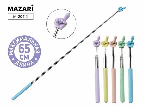 Указка телескопическая с пальцем MAZARI M-20412 пастель асс.,макс.длина 65см,ОПП