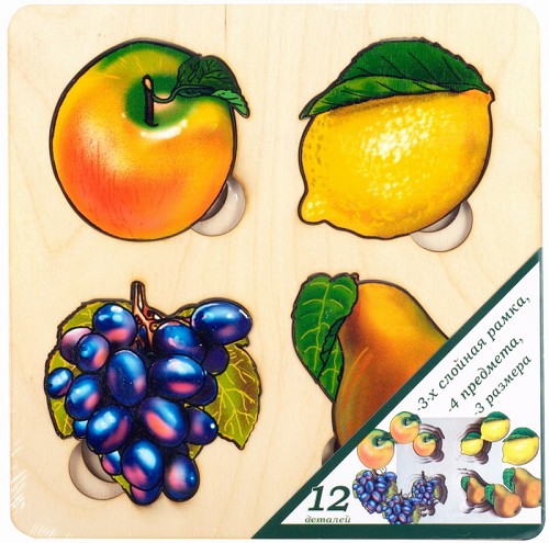 Развивающая дер.доска Больше-меньше Фрукты (24х24х1,5см) 7911