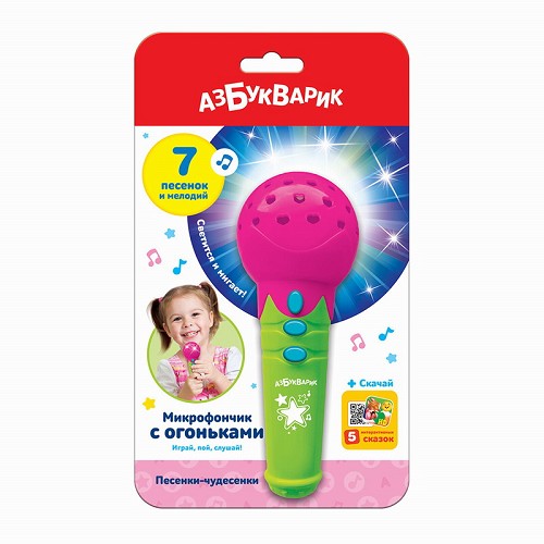 Песенки-чудесенки (Микрофончик с огоньками) Розовый 2554В (Азбукварик)