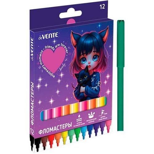 Фломастеры 12цв. deVENTE "Friends Forever" 5081634 вент.колп.,к/к/подвес