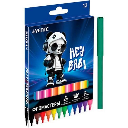 Фломастеры 12цв. deVENTE "Hey Bro" 5081628 вент.колп.,к/к/подвес