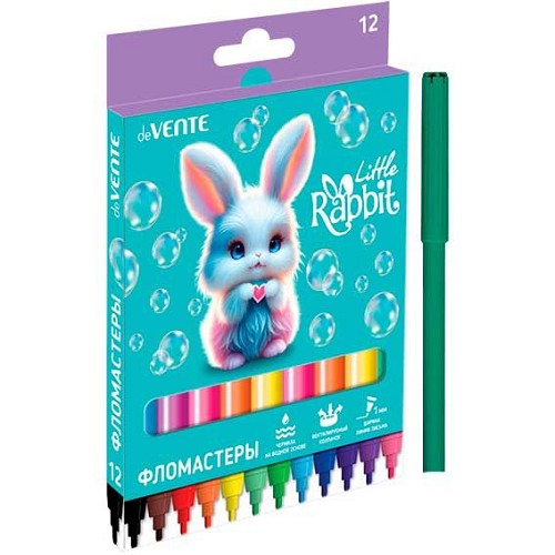 Фломастеры 12цв. deVENTE "Little Rabbit" 5081626 вент.колп.,к/к/подвес
