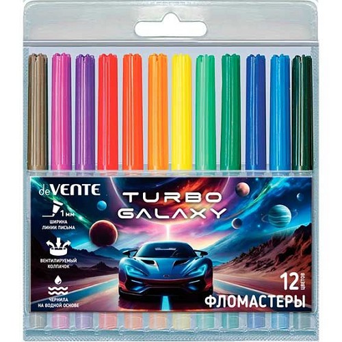 Фломастеры 12цв. deVENTE "Turbo Galaxy" 5081641 вент.колп.,пластик.блист.