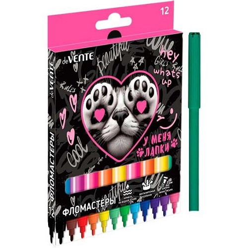 Фломастеры 12цв. deVENTE "У меня лапки" 5081633 вент.колп.,к/к/подвес