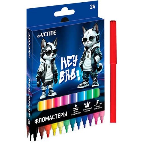 Фломастеры 24цв. deVENTE "Hey Bro" 5083628 вент.колп.,к/к/подвес