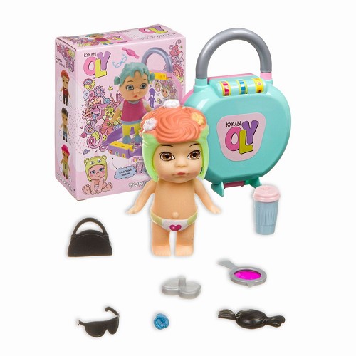 Bondibon Набор Куколка OLY (8см) в шапочке-ушанке с живот.и аксесс. в банане (де
