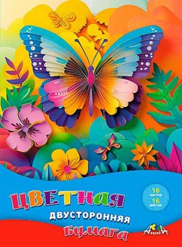 Бумага цв. двухстор. А4 16л.16цв. АППЛИКА "Яркая бабочка" С4443-20