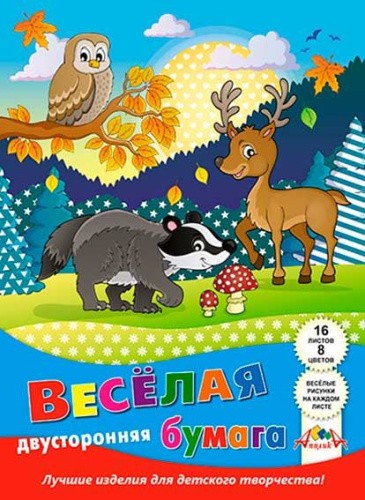 Бумага цв. двухстор. с рис. А4 16л. 8цв. АППЛИКА "Лесные друзья" С2779-11
