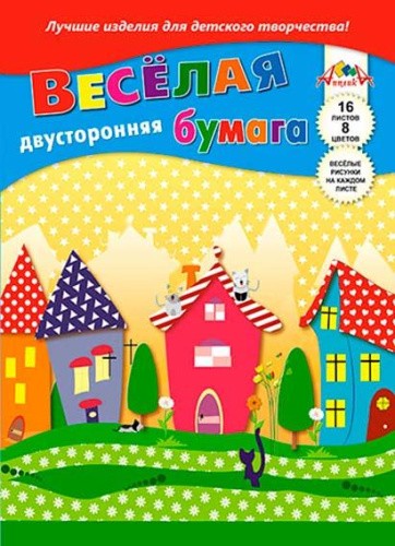 Бумага цв. двухстор. с рис. А4 16л. 8цв. АППЛИКА "Разноцветные домики" С2779-09
