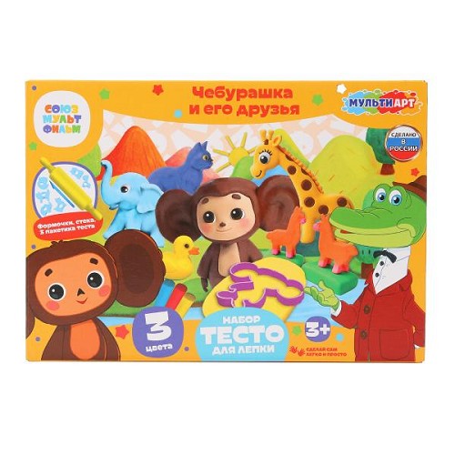 Набор с тестом д/лепки MultiArtи (3цв) и формочками Чебурашка и его друзья DSET-