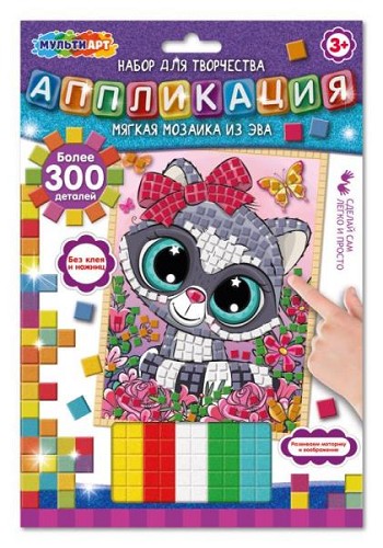 Аппликация мяг.мозаика ЕВА MultiArt (15х21см) Кавайные животные в/п EVAPACK-1124