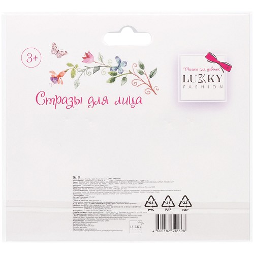 Lukky Fashion Стразы д/лица Переливающийся Бриллиант (17х12см) карта, в/п Т24130