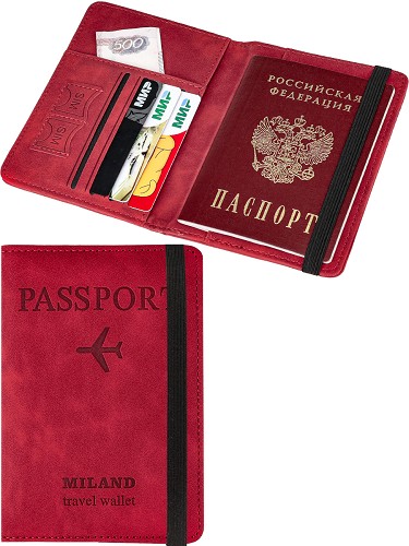 Обложка д/паспорта Вояж с отсеком д/карт на резинке, красная ОП-9630