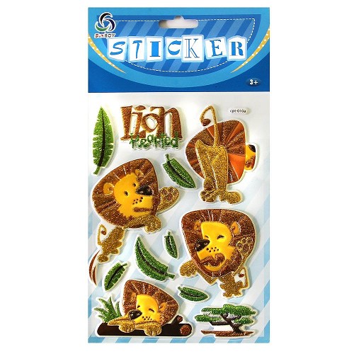 Наклейка объемн. 11*15см Лев глиттер Кн212