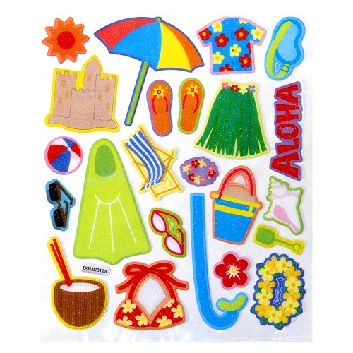 Наклейка объемн. 20*25см Отдых,пляж перламутр (012a) Кн44
