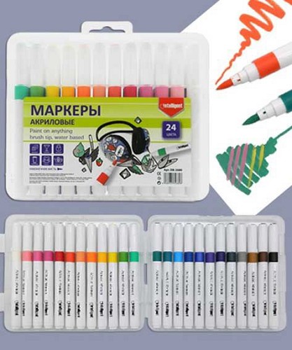 Маркеры акрил. 24цв. INTELLIGENT DJ-255/DB-2680 кисть,1-4мм,пластик/к