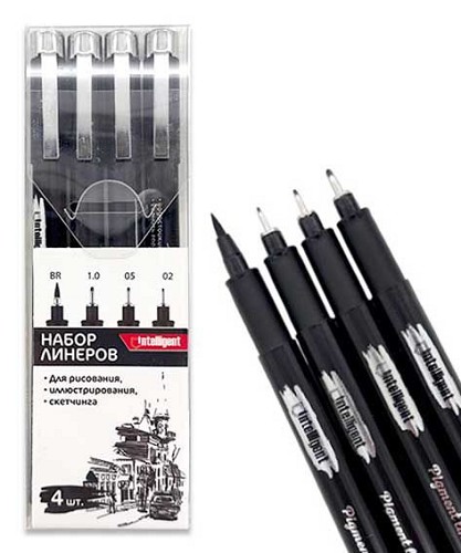 Набор линеров 4шт. INTELLIGENT DK-127 чёрные (0.2,0.5,1.0,кисть1-4 мм),ПВХ-уп.