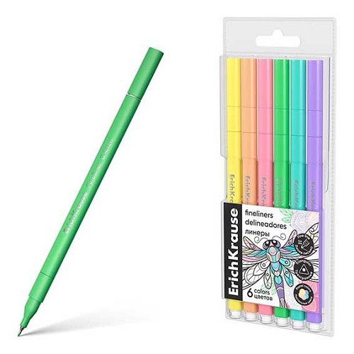 Набор линеров 6цв. EK "Art Spirit Pastel" 62952 футляр,е/подв.