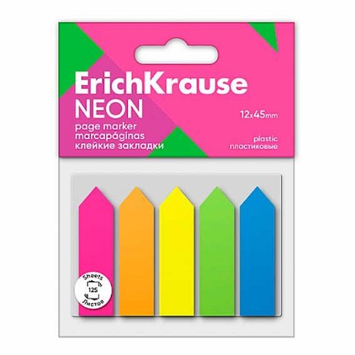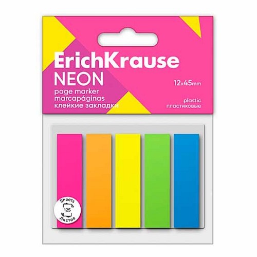 Набор самокл. этикеток-закладок EK 12*45мм "Neon" 61558 пластик.,5цв.,125л.