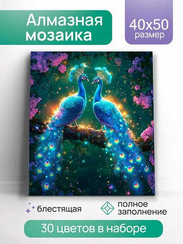Алмазная мозаика классика (40х50см) с подр,полн.зап. (30цв) Волшебные павлины НД