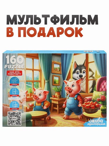 Пазлы (160эл) Три поросёнка (серия Оживи мультфильм) П160-3545