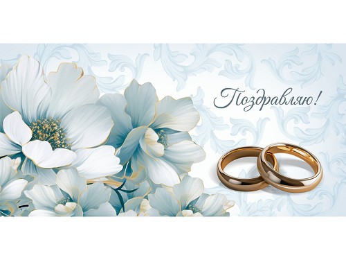 Конверт д/денег Свадебный Поздравляю Кольца (золото/серебро) ЗСС-0059