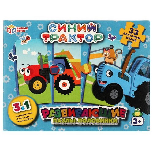 Пазлы-половинки 3-в-1 Синий Трактор 4650250536611