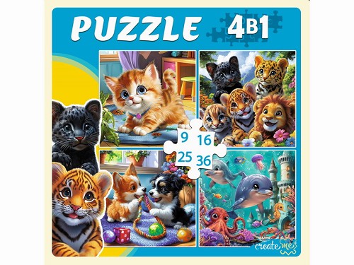 Пазлы 4-в-1 (9,16,25,36эл) Забавные котики №6 П-8387