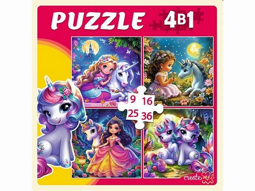 Пазлы 4-в-1 (9,16,25,36эл) Принцессы и сказочные единороги П-7588