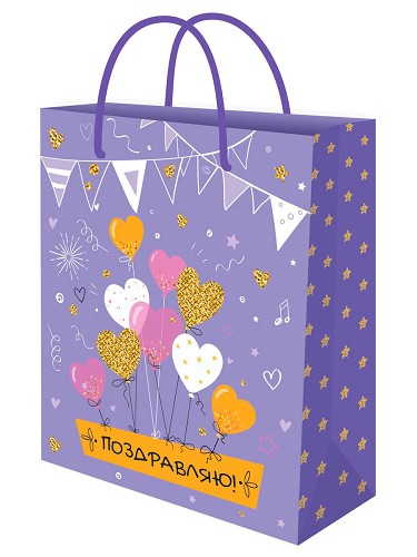 Пакет подар.глянц.лам. (26,4х32,7x8см) Воздушные сердца ППК-7823