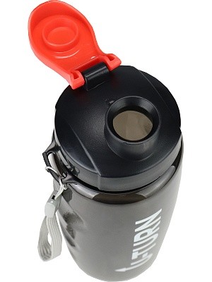 Бутылка д/воды пласт.с крышкой-защёлкой,ремешком Урбан (500мл) черная с красным