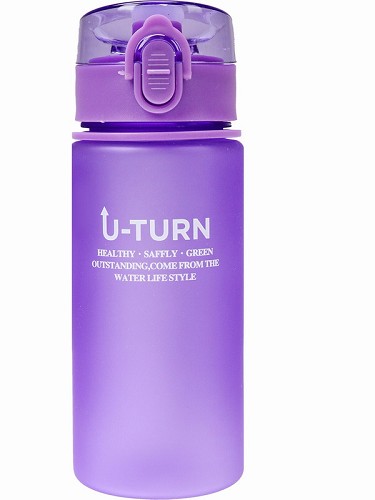Бутылка д/воды пластик.с крышкой-защёлкой,ремешком Неон ,U turn (400мл) фиолетов