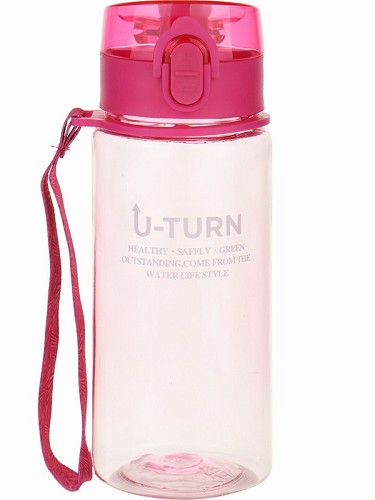 Бутылка д/воды пласт.с крышкой-защёлкой и ремешком Движение,U turn (400мл) розов