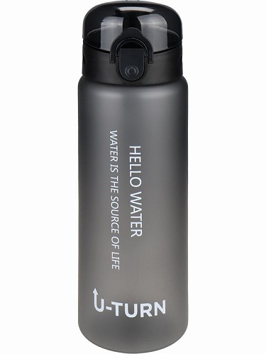 Бутылка д/воды пластик.с крышкой-защёлкой и ремешком Движение,U turn (400мл) чер